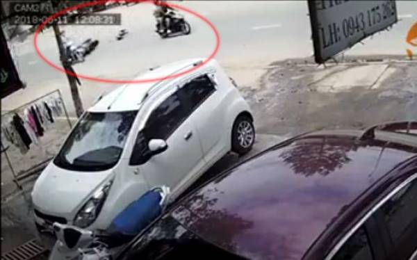 Ngày 11.6, một đoạn clip dài gần 1 phút được lan truyền trên mạng xã hội Facebook ghi lại cảnh một cô gái mang túi xách ngang người chạy xe máy trên đường. Bất ngờ, hai tên cướp chạy xe máy cùng chiều áp sát và giật phăng túi xách khiến cô gái ngã nhào xuống đường.