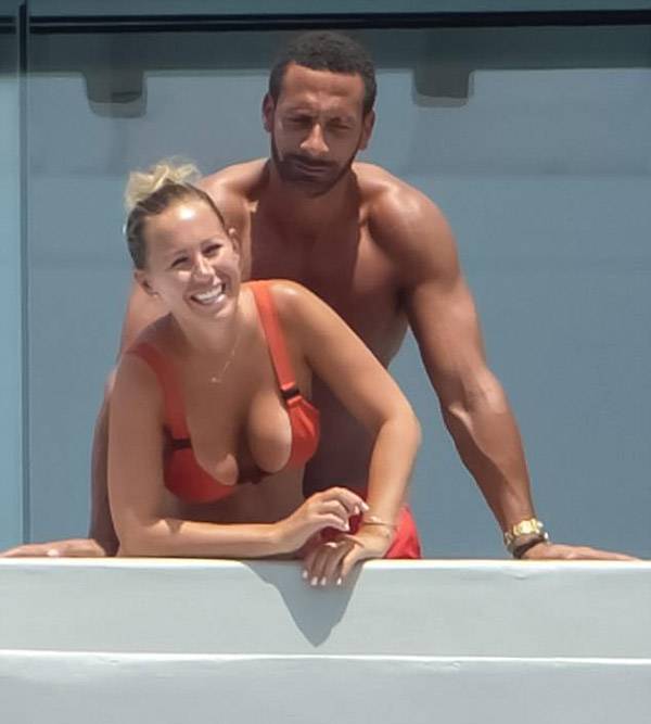 Tận hưởng kỳ nghỉ, Kate mặc bộ bikini gợi cảm màu cam khoe vòng một căng tràn đầy sức sống trên ban công của một khách sạn. Trong khi đó, Ferdinand đứng phía sau âu yếm bạn gái. Cựu hậu vệ của M.U và ĐT Anh dù nghỉ bóng đá từ khá lâu nhưng vẫn giữ được vóc dáng đáng ngưỡng mộ.