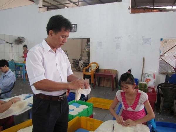 Nhân công sản xuất tại xưởng bánh tráng Ngọc Anh