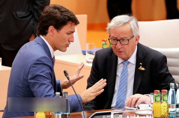 Thủ tướng Canada Justin Trudeau (ảnh, trái) Chủ tịch Ủyban châu Âu Jean-Claude Juncker (ảnh, phải)