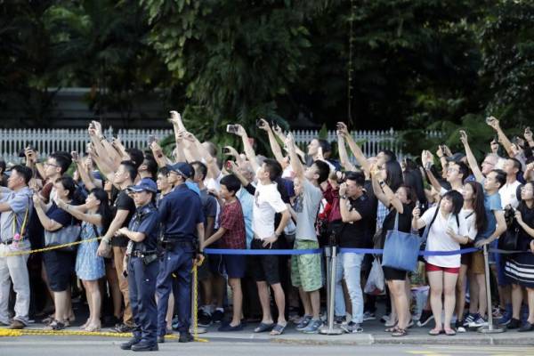 Đám đông người dân hiếu kỳ cũng đứng đợi ngoài cổng dinh thự Istana - nơi ở và làm việc của lãnh đạo Singapore để chứng kiến cuộc gặp giữa ông Kim Jong-un và Thủ tướng Lý Hiển Long. Sự kiên nhẫn của họ đã được đền đáp khi vào 18h30, một chiếc limousine Mercedes màu đen chở lãnh đạo Triều Tiên đã đến Istana.