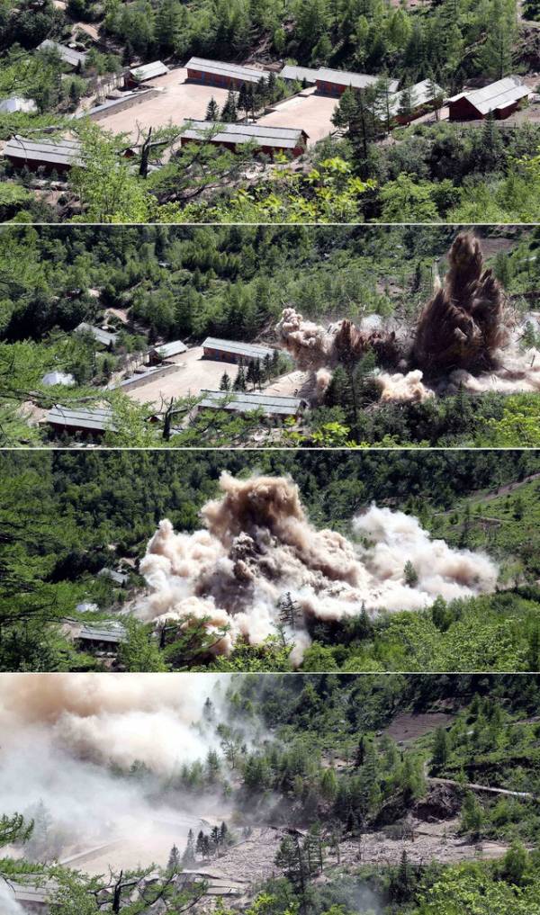 Các cơ sở tại khu thử hạt nhân Punggye-ri của Triều Tiên trước và sau khi bị đánh sập hồi tháng 5. (Ảnh: Reuters)