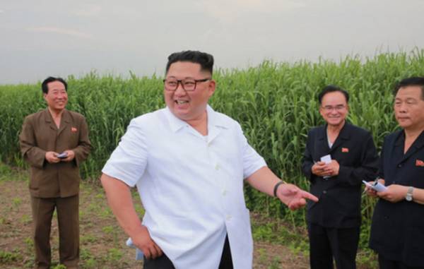 Hình ảnh trên truyền thông Triều Tiên cho thấy ông Kim đến thăm khu vực trồng sậy tại huyện Sindo thuộc tỉnh Pyongan ở phía bắc.