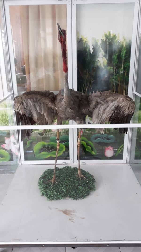 Tiêu bản sếu đầu đỏ đã qua đời ở Vườn Quốc gia Tràm Chim, huyện Tam Nông, tỉnh Đồng Tháp.