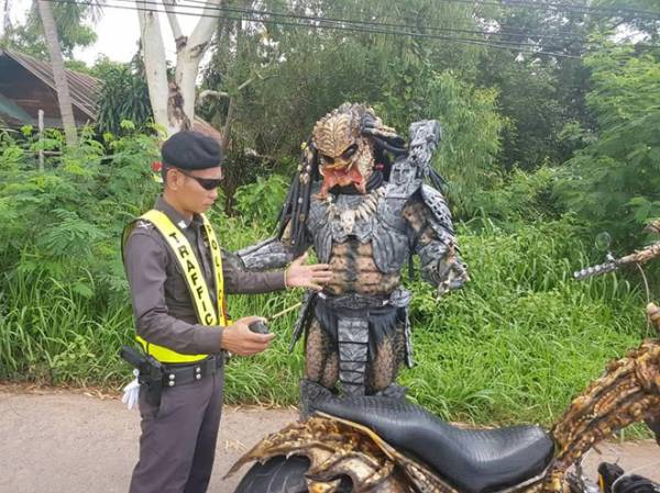 Mới đây, một fanpage đăng tải hình ảnh một biker hóa trang theo phong cách quái vật Predator bị cảnh sát Thái Lan hỏi thăm. Bài viết thu hút sự chú ý khi có tới hơn 14.000 lượt like, hơn 1.500 bình luận và gần 16.000 lượt .