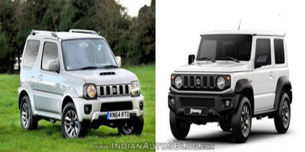 So với Jimny thế hệ 2 (bên trái) thì mẫu xe mới góc cạnh hơn, ca-pô phẳng hơn, có mũi xe thẳng cùng cản xe màu đen.