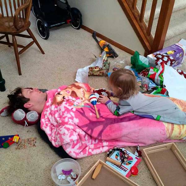 Khi mẹ vắng nhà và bố nhận nhiệm vụ trông trẻ.