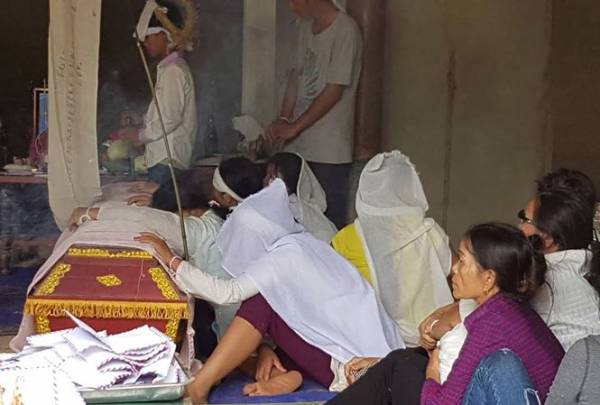 Anh em họ hàng gia đình nạn nhân Tý làm thủ tục tiễn đưa người quá cố.