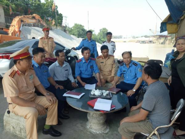 Đoàn kiểm tra liên ngành làm việc với chủ bến thủy không phép, yêu cầu ngừng hoạt động