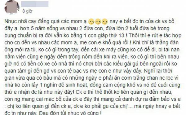 "Nay em bắt được tin nhắn của chồng với bồ đây ạ. Hơn 5 năm sống với nhau có 2 đứa con, đứa lớn 2 tuổi đứa bé trong bụng chuẩn bị ra đời vẫn không bằng 1 con giáp thứ 13! Thôi thì em rút, tác hợp cho người ta đến với nhau các mom ạ, mẹ con em khổ quá rồi!