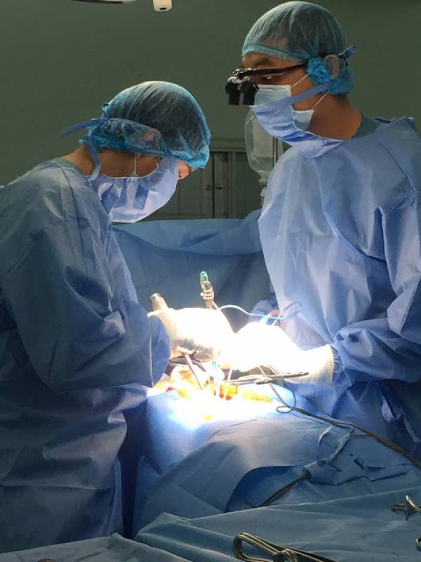 "Ekip phẫu thuật khẩn trương khâu lỗ thủng tâm thất cầm máu. Thám sát ngực trái thấy đứt động mạch vú trong bên trái, thực hiện khâu cầm máu và dẫn lưu máu trong khoang màng phổi. Trong lúc phẫu thuật, bệnh nhân vừa hồi sức tích cực, vừa truyền máu, truyền dịch để giữ vững huyết động với sự hỗ trợ tích cực của các bác sĩ cấp cứu, hồi sức, gây mê… Sau 1h15 phút, ekip phẫu thuật, cấp cứu và hồi sức đã phẫu thuật thành công vết thương thủng tim cho bệnh nhân”, bác sĩ Minh thông tin.