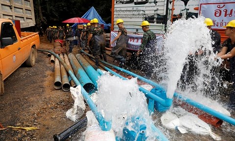 Nước trong hang Tham Luang vẫn liên tục được hút ra bên ngoài.