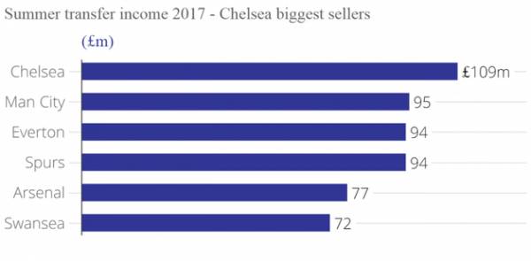 Số liệu cũng cho thấy mùa giải 2017/18 rồi Premier League đã bỏ ra 1,4 tỷ bảng để mua cầu thủ tăng 23% so mùa trước đó là 1.17 tỷ bảng. Dù nhìn chung các đội bóng Ngoại hạng Anh vẫn chi rất nhiều để mang về các siêu sao nhưng thống kê đã chỉ ra Chelsea là một cái tên buôn bán giỏi thì quả là bất ngờ.
