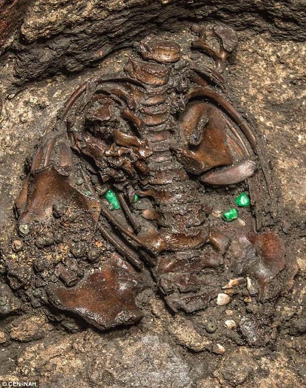 Bộ hài cốt vừa được phát hiện bên dưới đền thờ cổ Templo Mayor ở Tenochtitlan (giờ là trung tâm của thủ đô Mexico) được cho là một đứa trẻ sống vào cuối thế kỷ 15. Đứa bé này bị giết hại để hiến tế thần chiến tranh Huitzilopochtli.
