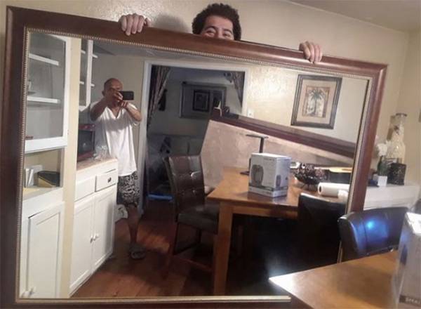 Mới lắp tấm gương, phải tranh thủ "tự sướng" kiểu ảnh.