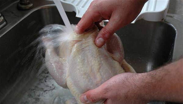 Theo đại diện của Bộ Nông nghiệp Hoa Kỳ, bạn không nên rửa thịt gà hay bất kỳ loại thịt nào khác trước khi chế biến, bởi bạn có thể làm vi khuẩn từ thịt sống lây lan tới các dụng cụ khác hoặc bề mặt bồn rửa. Thực tế, rửa thịt với nước không loại bỏ được vi khuẩn hay các chất bẩn khác, chúng chỉ bị giết chết khi đã được nấu chín.