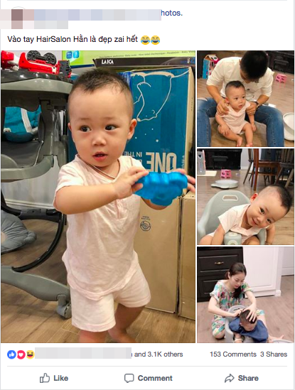Trong những hình ảnh mới nhất, bé Peter, con trai "hotgirl" Bella ngày càng trắng trẻo, hồng hào và tăng cân đều. Không chỉ vậy, "mẹ" Hằng còn trổ tạo cắt tóc tạo kiểu cho cậu bé.