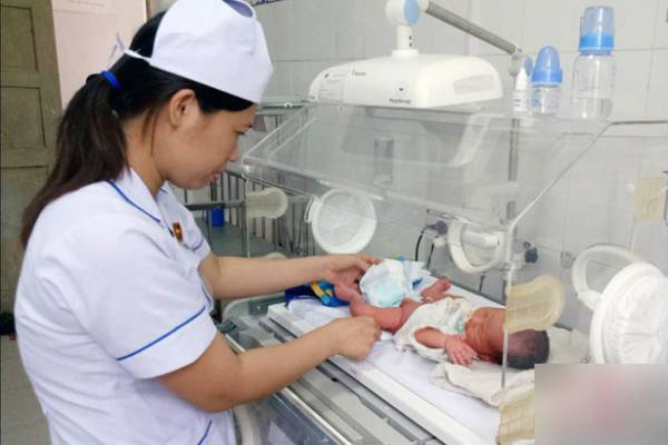 Tại đơn nguyên sơ sinh, bé được nằm lồng ấp, thở oxy, hút dịch mũi họng, đặt sonde dạ dày có dịch màu nâu nhạt lẫn máu, bơm rửa dạ dày.