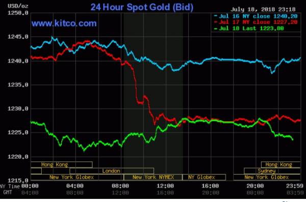 Mở đầu phiên giao dịch châu Á sáng nay, giá vàng giao ngay hiện ở mức 1.223,8 USD/oz, giảm 5 USD so với cùng thời điểm hôm qua.