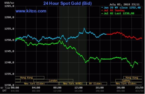Mở đầu phiên giao dịch châu Á sáng nay, giá vàng giao ngay hiện ở mức 1.238,8 USD/oz, giảm 12 USD so với cùng thời điểm hôm qua.