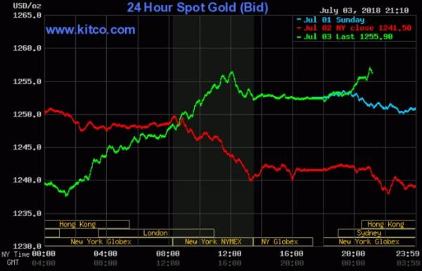 Hợp đồng tương lai vàng Comex giao tháng 8 tăng 13,1 USD lên mức 1.254,8 USD/ounce.