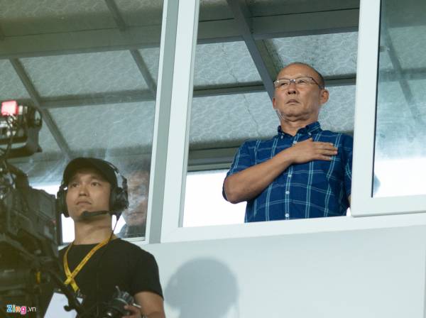 HLV Park đến sân từ khá sớm nhưng gặp khó khăn trong việc tìm chỗ ngồi. Những ghế trên khán đài A đều bị mưa hắt và vì thế, HLV trưởng U23 Việt Nam đành chạy lên chỗ cao nhất của khán đài A đó là cabin của bình luận viên truyền hình trực tiếp trận đấu. Từ đây, HLV Park Hang-seo có thể yên tâm theo dõi các diễn biến chính trên sân.