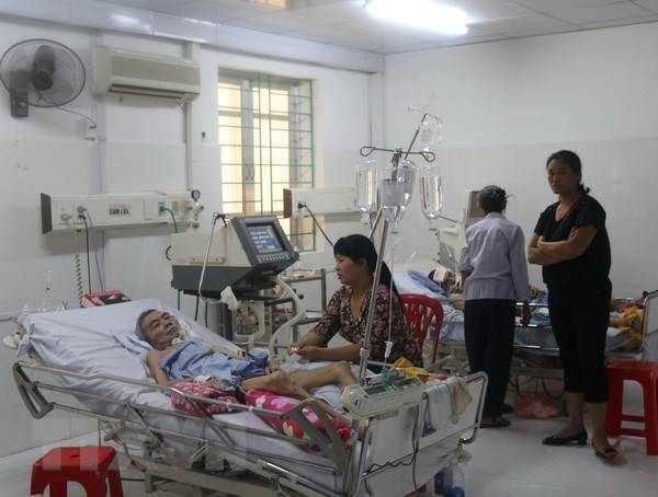 Các nạn nhân vụ tai nạn giao thông được cấp cứu tại Bệnh viện Đa khoa tỉnh Cao Bằng. (Ảnh: Chu Hiệu/TTXVN)