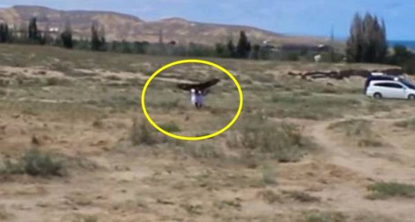 Chỉ trong vòng vài giây, con chim đại bàng vàng với sải cánh gần 2m đã lao tới vồ lấy bé gái vì tưởng nhầm cô bé là con mồi được thả ra.