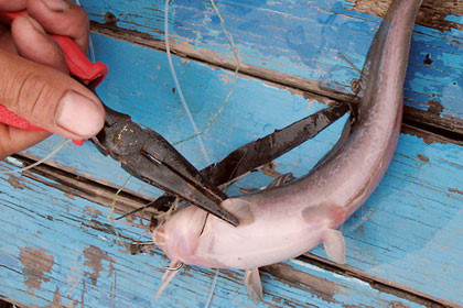 Cá ngát bung chuối xanh: cá ngát, chuối xanh, thịt ba chỉ, lá lốt, tía tô, nghệ, tiêu, ớt, mắm, muối gia vị vừa đủ nấu nhừ ăn. Công dụng: bổ huyết, ích khí, sinh tân… Dùng tốt cho người tâm tỳ hư, sa sút trí nhớ, chứng khí huyết đều hư, mệt mỏi.