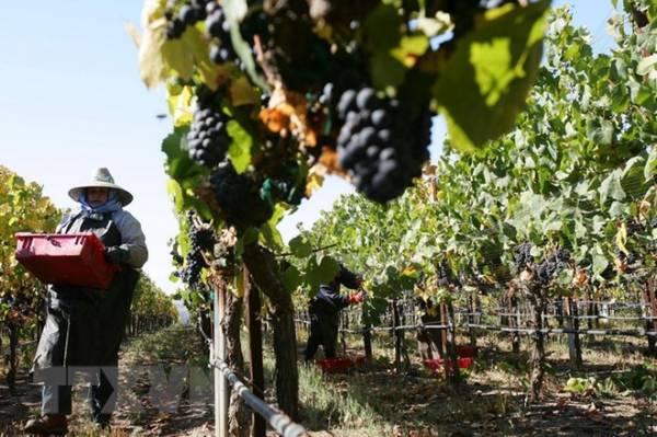 Nông dân thu hoạch nho tại California của Mỹ.