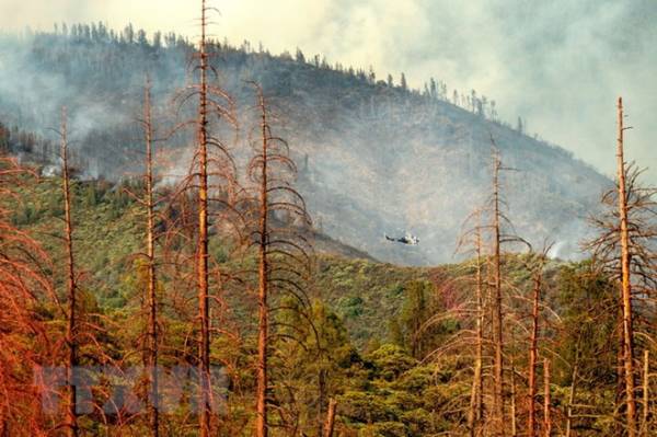 Cháy rừng tàn phá rừng quốc gia Stanislaus ở California của Mỹ ngày 22/7 vừa qua. (/TTXVN)