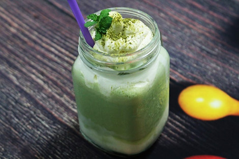 Rắc thêm 1 chút bột trà xanh matcha lên trên cho thêm phần hấp dẫn, khi uống bạn khuấy đều và thưởng thức thôi nào!
