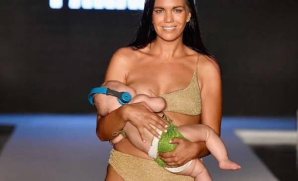 Tại một quốc gia mà nhiều người phụ nữ còn cảm thấy ngại ngùng khi cho con bú ở nơi công cộng, việc một người mẫu vừa bước đi trên sàn catwalk tại Miami (Mỹ), vừa cho con mình bú – thực sự đã gây được sự chú ý lớn.