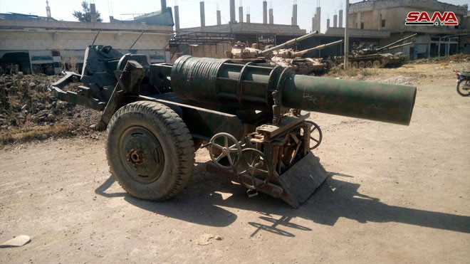 Các phương tiện chiến lợi phẩm quân đội Syria thu giữ ở Daraa. Ảnh SANAQuân đội Syria thu giữ vũ khí trang bị của lực lượng Hồi giáo cực đoan ở Daraa. Video SANA
