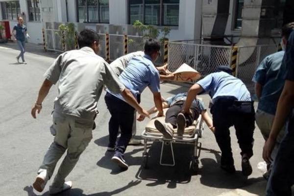 Nhanh chóng đưa công nhân bị ngất ra xe đi cấp cứu. Ảnh: CTV