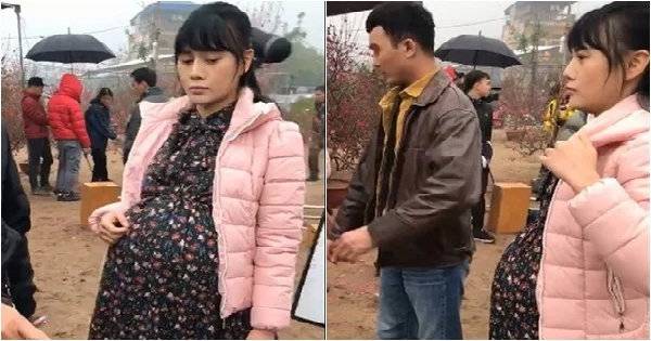 Hậu trường cảnh Quỳnh búp bê được Cảnh đưa đi sắm Tết, lúc này bụng bầu của cô khá lớn