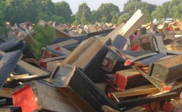 Nhiều quan tài của người dân bị tịch thu và phá hủy. (Ảnh: Handout/SCMP)