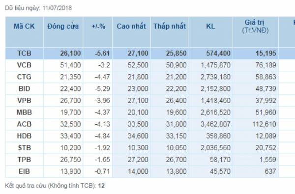 Trong khi đó, mã TCB của Techcombank, sau khi phát hành cổ phiếu thành công để tăng vốn điều lệ đã chính thức trở thành mã cổ phiếu có vốn hóa thị trường đứng thứ ba nhóm ngành ngân hàng (sau Vietcombank và Vietinbank), hiện chỉ còn 26.100 đồng/CP, giảm mạnh so với vùng giá 40.000 đồng/CP như kỳ vọng của lãnh đạo TCB trước khi niêm yết trên HoSE.