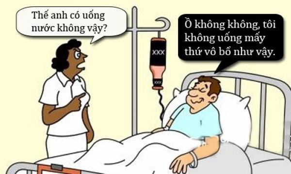- Có uống một chút thưa bác sĩ, tôi uống một ít bia sau khi ăn để dễ tiêu hóa, uống một ít rượu để giúp các mạch máu dễ dàng lưu thông hơn, thỉnh thoảng uống thêm một ít nữa để khử trùng đường ruột.