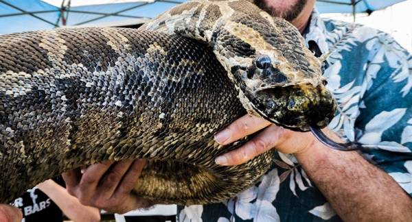 Người đàn ông cầm trên tay trăn khổng lồ. Ảnh minh họa