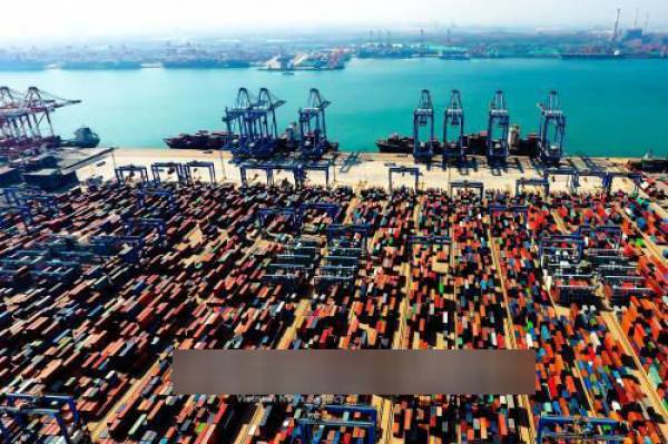 Hàng hóa được xếp tại cảng ở Thanh Đảo, tỉnh Sơn Đông, Trung Quốc ngày 4/5.