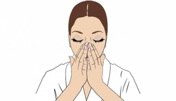 Nhắm mắt lại và đưa hai lòng bàn tay úp nhẹ vào mặt rồi hít thở một vài giây để tận hưởng mùi hương của tinh dầu.
