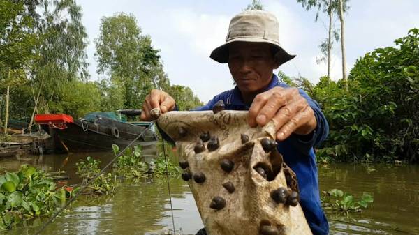 Tận dụng những bao xi măng cũ, một lão nông ở Đồng Tháp có thể kiếm khoảng 1 triệu đồng/ngày nhờ tuyệt chiêu bắt ốc đắng độc đáo.