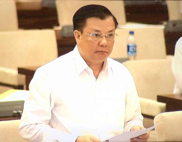 Bộ trưởng Bộ Tài chính Đinh Tiến Dũng trình bày Dự thảo Nghị quyết của UBTVQH về Biểu thuế bảo vệ môi trường. Ảnh: VGP/Nguyễn Hoàng