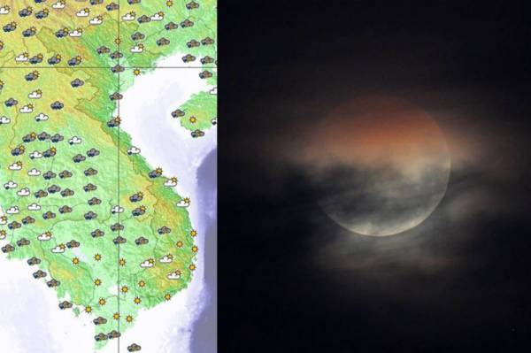Theo Trung tâm Dự báo khí tượng thuỷ văn quốc gia, đêm nay (27/7) và rạng sáng mai (28/7), các tỉnh miền Bắc sẽ có mưa và mây mù, khả năng quan sát được nguyệt thực toàn phần dài nhất thế kỷ 21 là rất thấp. Trong khi đó các tỉnh từ Thừa Thiên-Huế đến Nam Bộ, đặc biệt là khu vực ven biển Trung Bộ và Nam Bộ sẽ có nhiều khả năng quan sát được.