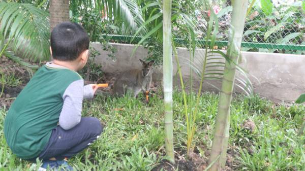 Chị Trần Thị Mai (Q.Bình Thạnh, TP.HCM) và hai con trai đã ồ lên thích thú khi thấy 3 con chuột túi Wallaby chạy nhảy tung tăng trong vườn thú. Còn 3 “anh chị” Wallaby khác thì nằm lim dim trong nhà có vẻ nhút nhát, sợ sệt trước số lượng quá đông du khách đang giơ máy ảnh, điện thoại lên chụp hình. Nhiều em thiếu nhi mạnh dạn mang cà rốt lại gần đưa mời các chú chuột túi Wallaby cầm ăn ngon lành. Chú Mai Thanh Trung (Đồng Tháp) lần đầu tiên ở quê lên đưa cả gia đình đi tham quan lại trúng ngay sự kiện tiếp nhận những cá thể độc đáo này từ Hà Lan và Nhật Bản nên rất vui.