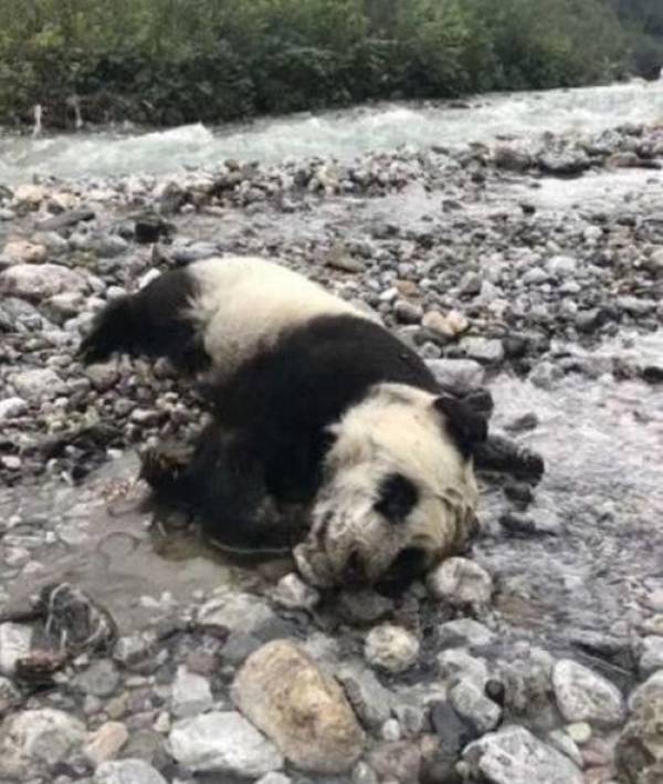 Con gấu trúc hoang dã đáng thương bị chết đuối khi nước lũ dâng, sau khi chết một thời gian, gấu trúc đáng thương mới được phát hiện ở vùng rừng được bảo vệ thuộc khu Vân Hoa, trấn Tây Lĩnh, Thành Đô, Tứ Xuyên, Trung Quốc.