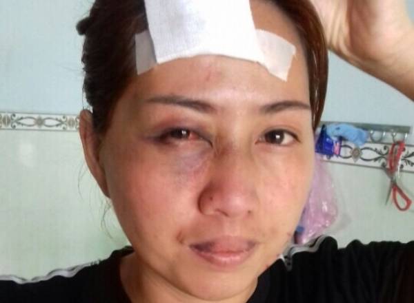 Chị Hạnh sau khi bị đánh, thương tích 14% - Ảnh: Thạch Mau