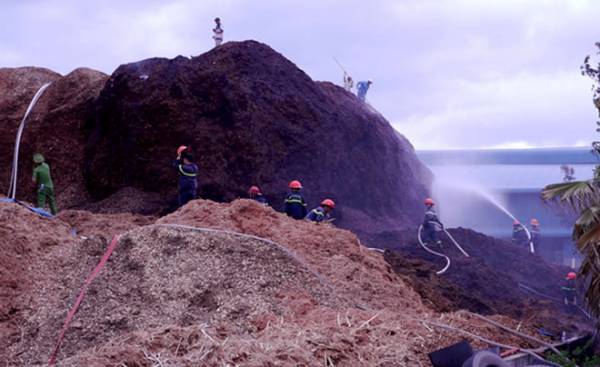 Theo người dân địa phương, kho gỗ dăm cháy đỏ rực cả khoảng trời, khói đen mịt mù xộc vào các khu dân cư xung quanh. Thời điểm xảy ra hỏa hoạn, gió lớn khiến bãi chứa gỗ dăm càng cháy dữ dội.