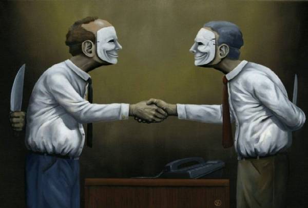 Con người ta trong cuộc sống hàng ngày dường như cũng đang đeo những chiếc mặt nạ để đóng các vai và biểu diễn trên sân khấu của cuộc đời. Do vậy, kẻ tiểu nhân đang đeo mặt nạ của người quân tử. Kẻ ác đeo mặt nạ của người lương thiện. Kẻ háo sắc đeo mặt nạ của người đoan chính, tử tế. Đây cũng là điều khiến xã hội dần bại hoại và gây ra nhiều hậu quả khôn lường.